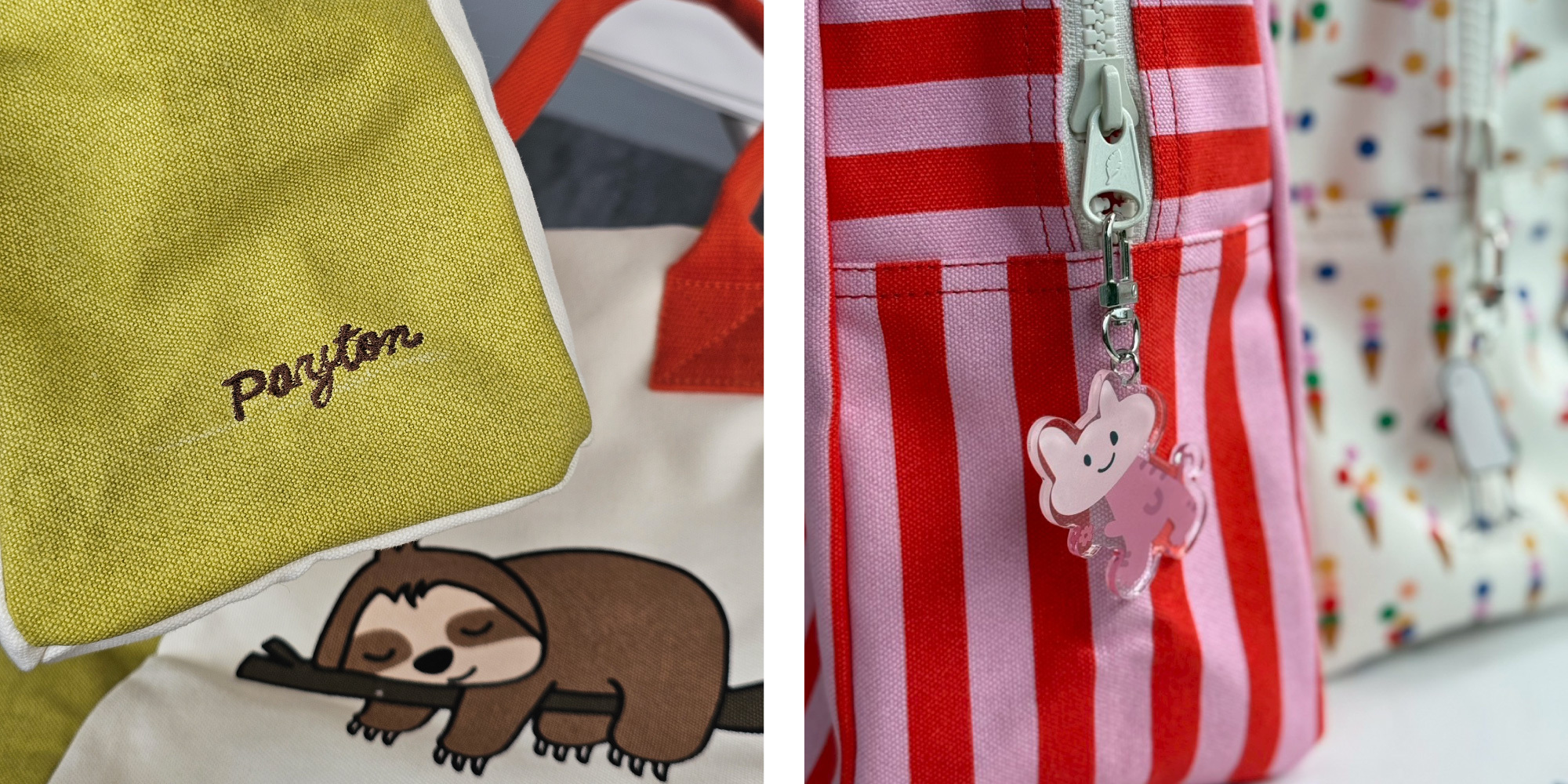 趣味掛飾個人化:在條紋包上掛上公仔吊飾、色彩刺繡貼章或是FLUF專屬客製化名字。2026 年包款趨勢強調豐富的掛件與紋理感,這能讓制式的條紋包更有專屬感。