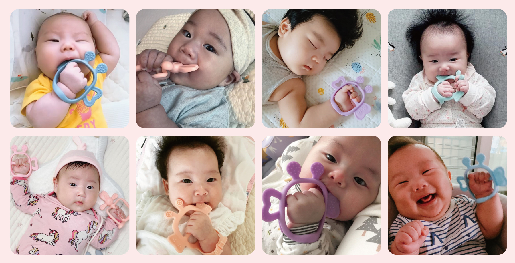 基本上2個月開始就可以開始幫寶貝準備固齒器囉!不妨多準備幾個不同款式、顏色、外型,增加寶寶的觸感和認知和視覺,這個對寶寶的成長來說都大有幫助唷!