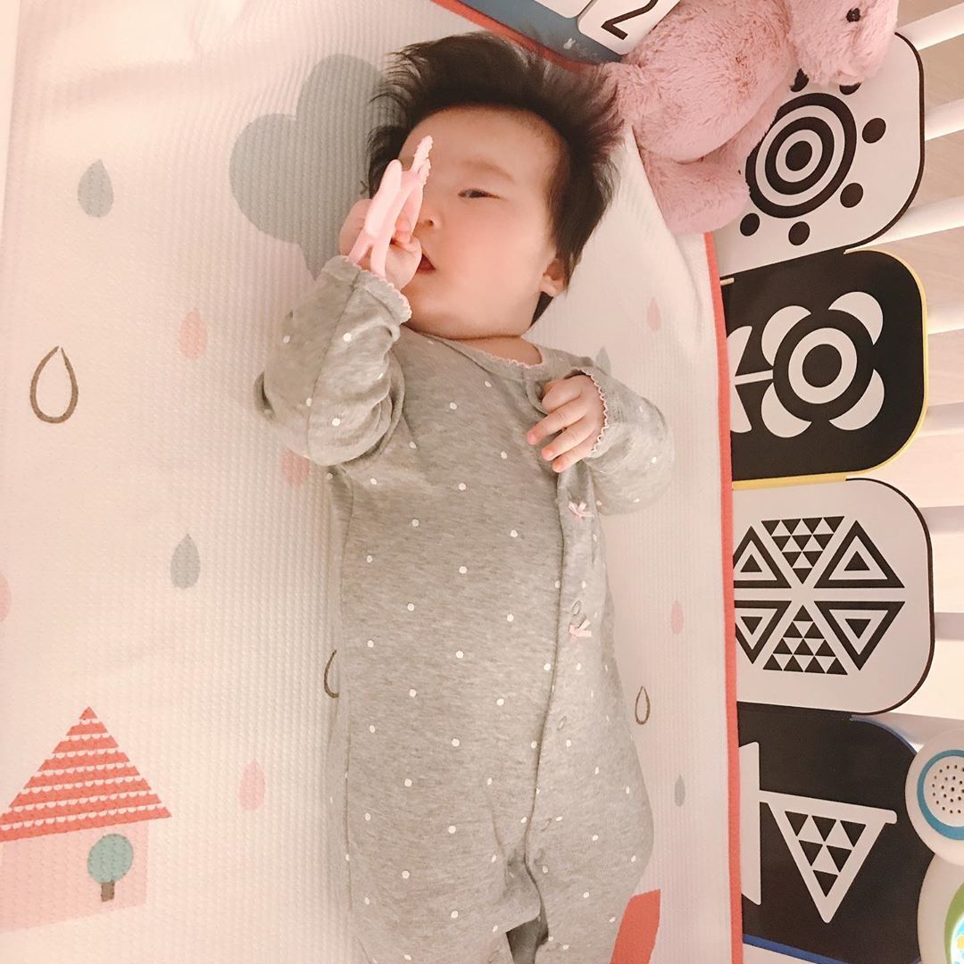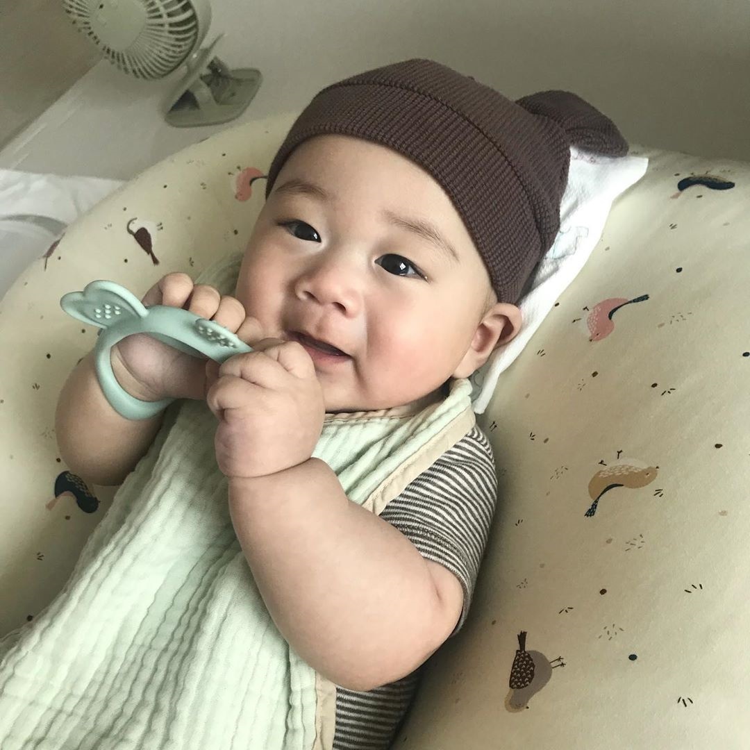 3 個月(100 天)前後:可以讓他開心地咬著固齒器