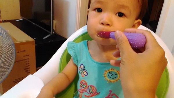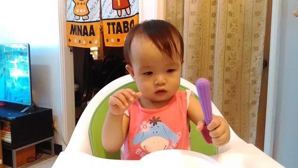 然後寶寶初次長牙的同時,剛好也是學習吃飯的時期。