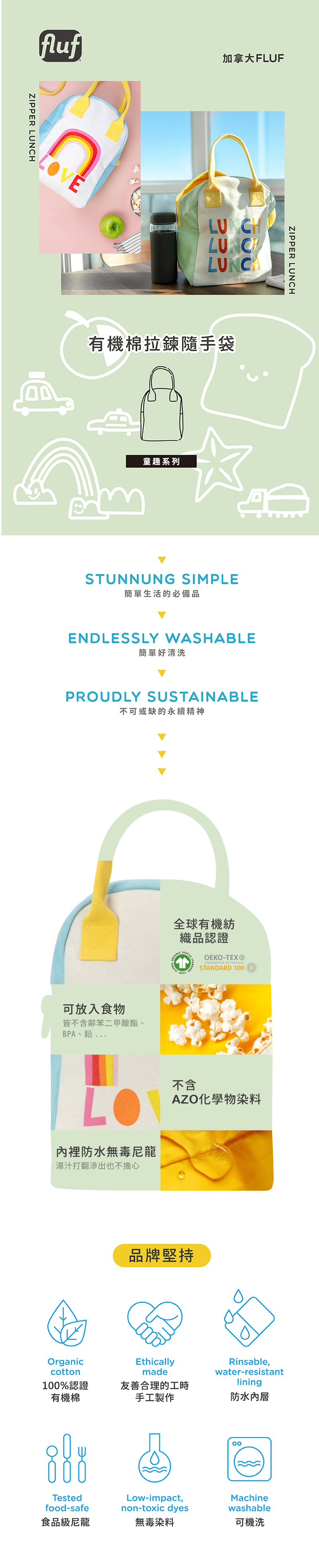 拉鍊隨手袋【LOVE】-加拿大Fluf有機棉